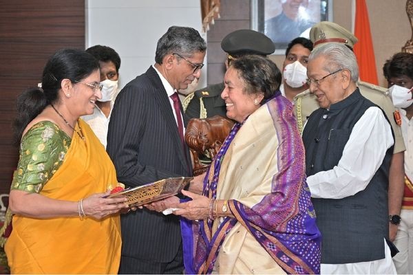 ఏపీలో సుప్రీంకోర్టు చీఫ్ జస్టిస్ ఎన్వీ రమణ పర్యటన కొనసాగుతోంది. ఈ నేపథ్యంలో ఆదివారం సాయంత్రం సీజేఐ ఎన్వీ రమణకు ఏపీ గవర్నర్ బిశ్వభూషణ్ హరిచందన్ తేనీటి విందు ఇచ్చారు. విజయవాడలోని రాజ్భవన్లో జరిగిన ఈ కార్యక్రమంలో సీఎం జగన్ దంపతులు కూడా పాల్గొన్నారు. ఈ సందర్భంగా సీజేఐ ఎన్వీ రమణ దంపతులు, సీఎం జగన్ దంపతులకు రాజ్ భవన్ వర్గాలు సాదర స్వాగతం పలికాయి.