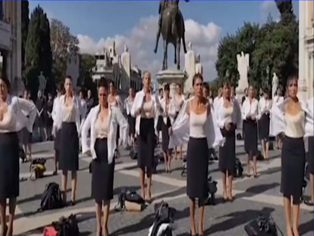 ఇటలీ ఎయిర్ హోస్టెస్ అర్ధనగ్న ప్రదర్శనలతో కూడిన నిరసనలకు సంబంధించిన ఫోటోలు ఇప్పుడు ప్రపంచవ్యాప్తంగా వైరల్గా మారింది. ఇటలీలోని అలిటాలియా ఎయిర్లైన్స్కు చెందిన సుమారు 50 మంది ఎయిర్హోస్టెస్లు అర్ధనగ్న నిరసనలకు దిగారు. రోమ్లోని టౌన్ హాలు ముందు తమ నిరసనలు వ్యక్తం చేశారు. జీతంలో కోతలు, ఉద్యోగాలు తొలగించడం పై మనస్తాపం చెంది నిరసనలకు దిగినట్టు చెప్పారు. ఈ మధ్య కాలంలో అలిటాలియా ఎయిర్లైన్స్ను తాజాగా ఐటీఏ ఎయిర్వేస్ స్వాధీనం చేసుకుంది.