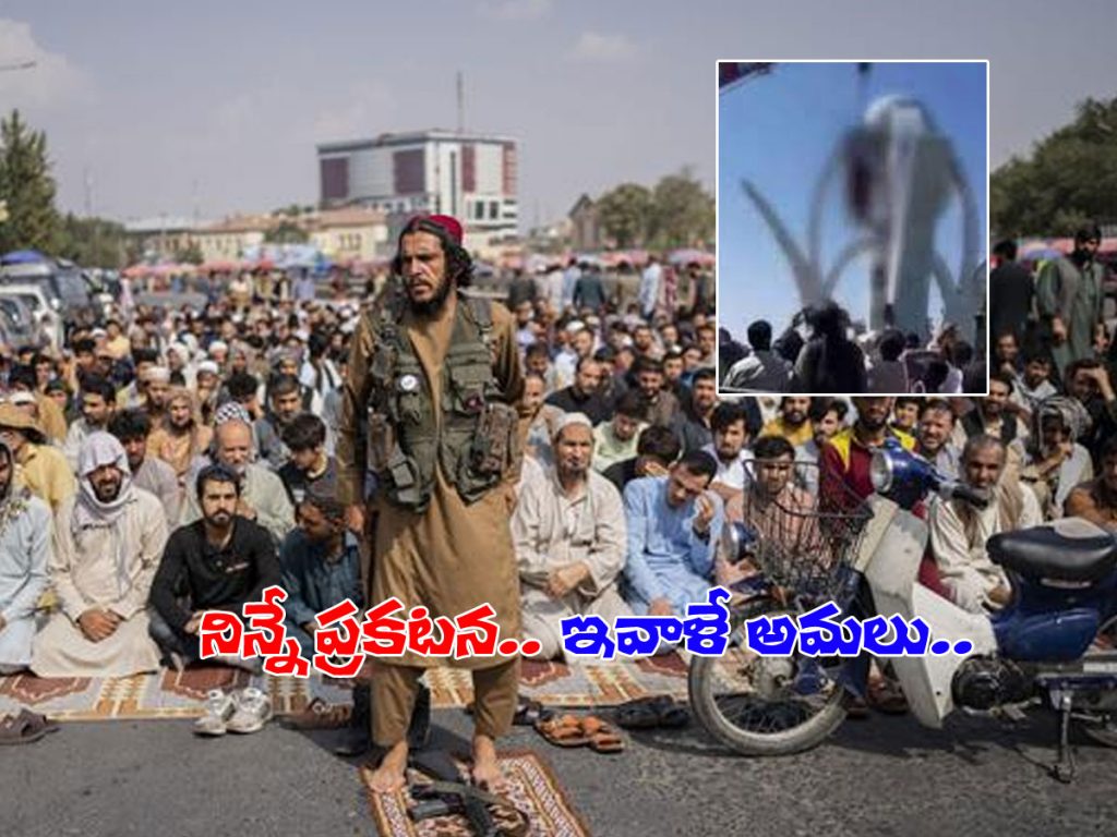 ఇటీవలే ప్రకటించిన వెంటనే అమల్లో పెట్టారు తాలిబన్లు.. దీంతో వారికి అరచకపాలన మళ్లీ మొదలు పెట్టారు.. ఇక, విషయానికి వస్తే.. హెరాత్ సిటీలో వ్యాపారిని కిడ్నాప్ చేసిన నలుగురికి మరణశిక్ష విధించారు తాలిబన్లు.. నలుగురిని బహిరంగంగా కాల్చి చంపేవారు.. ఆ తర్వాత మృతదేహాలను సిటీ జంక్షన్లో క్రేన్లతో వేలాడదీసిన తాలిబన్లు తమ క్రూరత్వాన్ని బయటపెట్టారు. కాగా, దోషులను కఠినంగా శిక్షిస్తామంటూ ఇటీవలే ప్రకటించిన తాలిబన్లు.. కాళ్లు, చేతులు నరకడం వంటి శిక్షలు అమల్లో ఉంటాయని వెల్లడించిన సంగతి తెలిసిందే.