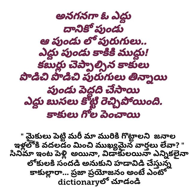 సీనియర్ యాంకర్, నటి ఝాన్సీ మీడియాపై షాకింగ్ కామెంట్స్ చేసింది. “అనగనగా ఓ ఎద్దు, దానికో పుండు, ఆ పుండులో పురుగులు… ఎద్దు పుండు కాకికి ముద్దు. కబుర్లు చెప్పాల్సిన కాకులు పొడిచి పొడిచి పురుగులు తిన్నాయి, పండును పెద్దది చేశాయి. ఎద్దు రెచ్చి పోయింది, కాకులు గోల పెంచాయి. మైకులు పెట్టి మరీ మా మురికి గొట్టాలని జనాల ఇళ్లలోకి వదలడం మించి ముఖ్యమైన వార్తలు లేవా? సినిమా ఇంట్లో పెళ్లి అయినా, విడాకులు అయినా, ఎన్నికల అయినా లోకులకు సందడి అనుకుని హడావిడి చేస్తున్న కాకుల్లారా… ప్రజా ప్రయోజనం అంటే ఏంటో డిక్షనరీలో చూడండి” అంటూ సంచలన వ్యాఖ్యలు చేసింది.