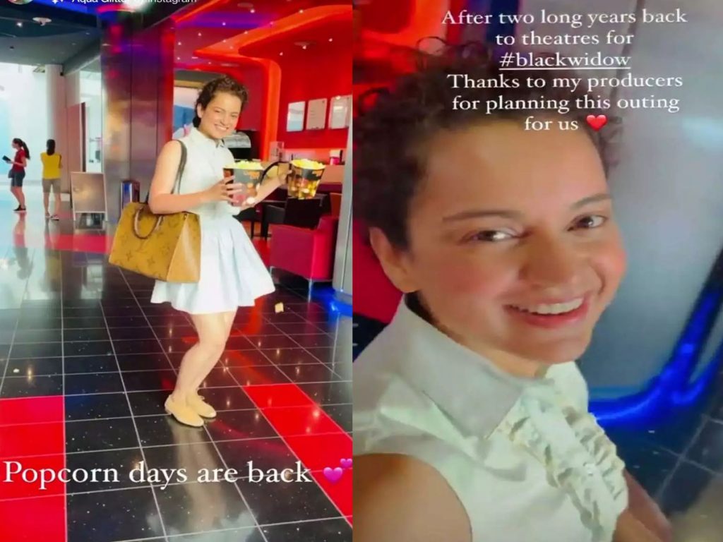 కంగనా ‘పాప్ కార్న్’ వినోదం… ‘బ్లాక్ విడో’ వీక్షించిన బాలీవుడ్ ‘క్వీన్’!