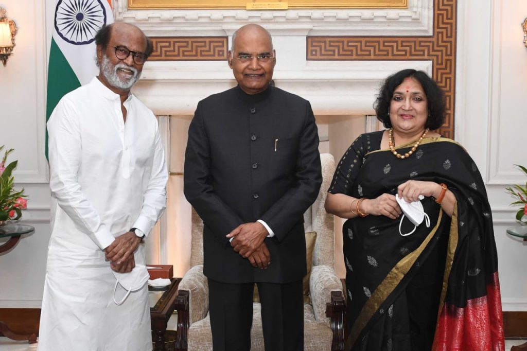 సౌతిండియన్ సూపర్ స్టార్ రజనీకాంత్ కీర్తి కిరీటంలో తాజాగా దాదా సాహెబ్ ఫాల్కే అవార్డుతో మరో కలికి తురాయి చేరింది. సహజంగా జాతీయ సినిమా అవార్డులను, పద్మ పురస్కారాలను రాష్ట్రపతి అందిస్తారు. అయితే ఇటీవల జరిగిన ఈ కార్యక్రమంలో ఉప రాష్ట్రపతి వెంకయ్య నాయుడు చేతుల మీదుగా రజనీకాంత్ తో పాటు సినిమా రంగానికి చెందిన అవార్డు గ్రహీతలు పురస్కారాలను అందుకున్నారు. తాజాగా రజనీకాంత్, ఆయన శ్రీమతి లత న్యూఢిల్లీలో రాష్ట్రపతి రామ్ నాథ్ కోవింద్ ను, ప్రధానమంత్రి నరేంద్ర మోదీని కలిశారు. ఈ విషయాన్ని రజనీకాంత్ ఫోటోలతో పాటు ట్వీట్ చేస్తూ, ‘గౌరవనీయులైన రాష్ట్రపతి, ప్రధాన మంత్రిని కలవడం మరియు అభినందించడం చాలా ఆనందంగా ఉంది’ అని పేర్కొన్నారు.