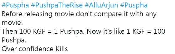 దీంతో సినిమా చూసిన వారిలో కొందరు ప్రేక్షకులతో పాటు యష్ ఫ్యాన్స్, అల్లు అర్జున్ యాంటీ ఫ్యాన్స్ ‘కేజీఎఫ్’కి ‘పుష్ప’ ఎక్కడా చేరువలో లేదని సోషల్ మీడియా ద్వారా కామెంట్స్ చేస్తున్నారు. ట్విట్టర్, ఫేస్బుక్లలో ఘాటైన వ్యాఖ్యలతో ‘పుష్ప’ సినిమాను ట్రోల్ చేస్తున్నారు. మరోవైపు ‘కేజిఎఫ్’ కంటే ‘పుష్ప’ బెటర్ అని, అల్లు అర్జున్ని మునుపెన్నడూ లేని విధంగా ఈ సినిమా చూపించిందని, బన్నీ కెరీర్లోనే బెస్ట్ పెర్ఫార్మెన్స్ అని, సినిమా భారీ హిట్ అవుతుందని ‘పుష్ప’రాజ్ ఫ్యాన్స్ ప్రచారం చేస్తున్నారు. ఎవరు ఏం మాట్లాడినా, ఏం చేసినా మొత్తానికి ‘పుష్ప’కు ‘కేజీఎఫ్’తో ఈ పోలిక హాట్ టాపిక్గా మారింది. ఇదిలా ఉంటే ‘పుష్ప’ టిక్కెట్లు హాట్ కేకుల్లా అమ్ముడైన విషయం తెలిసిందే.