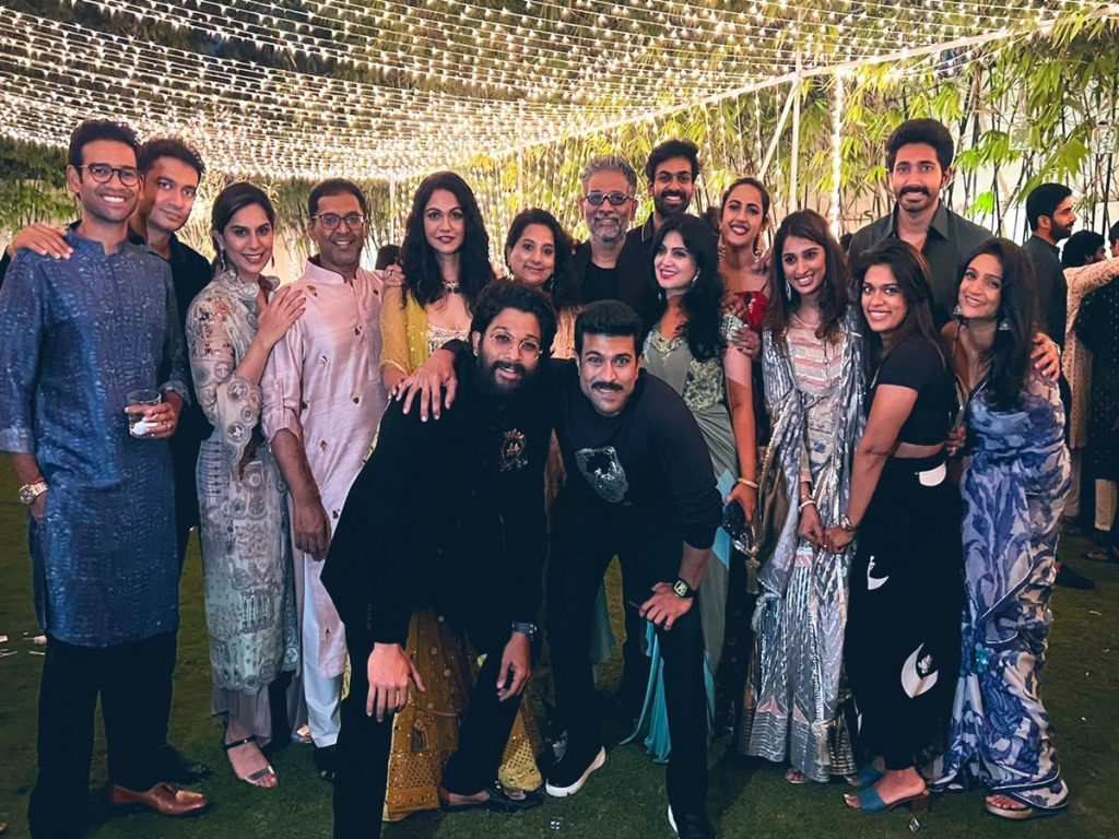 దీపావళి పండగను స్టార్ హీరోలు అల్లు అర్జున్, రామ్చరణ్ ఘనంగా జరుపుకుంటున్నారు. ఈ నేపథ్యంలో ఐకాన్ స్టార్ అల్లు అర్జున్ ఫ్యామిలీ ఫోటోను సోషల్ మీడియాలో షేర్ చేసి అభిమానులకు దీపావళి శుభాకాంక్షలు తెలిపాడు. బన్నీ షేర్ చేసిన ఫోటోలో అంతా యంగర్ జనరేషన్ కనిపిస్తోంది. అల్లు అర్జున్-స్నేహ, రామ్చరణ్-ఉపాసన, నిహారిక-చైతన్య, వైష్ణవ్ తేజ్, అల్లు బాబీతో పాటు పలువురు మెగా కుటుంబసభ్యులు కనిపిస్తున్నారు. అయితే ఈ ఫొటోలో యంగ్ హీరో సాయి తేజ్ మాత్రం కనపడలేదు. అతడు ఇటీవల రోడ్డుప్రమాదానికి గురి కాగా ఆసుపత్రిలో చికిత్స తీసుకుని, ఇంటికి వచ్చిన విషయం తెలిసిందే. దీంతో ప్రస్తుతం అతడు విశ్రాంతి తీసుకుంటున్నాడు.