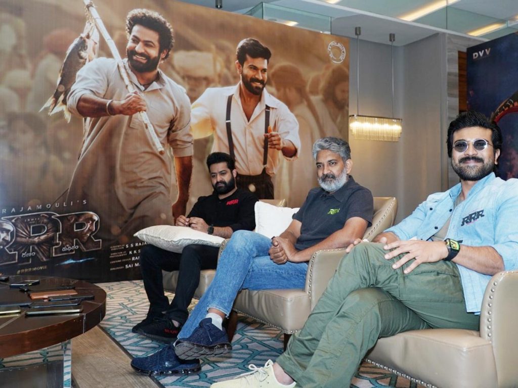 మీడియావాళ్ళు అడిగిన పలు ప్రశ్నలకు రాజమౌళి, తారక్, చరణ్ హుషారుగా సమాధానాలిచ్చారు. వారి ఉత్సాహం చూస్తోంటే, ఎప్పుడెప్పుడు ‘ట్రిపుల్ ఆర్’ మూవీని విడుదల చేసేద్దామా అన్న తీరున ఉన్నట్టు అనిపించింది. ఈ చిత్ర నిర్మాణం దాదాపు మూడేళ్ళు పట్టింది. అందులో ఒకటిన్నర సంవత్సరం కోవిడ్ తోనే గడచిపోయింది. మిగిలిన సంవత్సరం పాటు చిత్రీకరణ సాగితే, దానిని మెరుగులు దిద్దడానికి మరో అర్ధ సంవత్సరం సరిపోయింది. ఒక్క సినిమా కోసమే ఇంతకాలం పనిచేసినా, ఏ మాత్రం విసుగు చెందలేదని ఆ ముగ్గురు ఇచ్చిన సమాధానాలను బట్టి తెలుస్తోంది. కేవలం విశ్రాంతికి ముందు వచ్చే సీన్ కోసం దాదాపు అరవై రాత్రులు పనిచేసినట్టు తారక్ తెలిపారు. ఈ సినిమాలో నటించడమే ఓ మరపురాని అనుభూతి అని చరణ్ చెప్పారు. తారక్ నైజానికి తగ్గ పాత్ర కొమరమ్ భీమ్ అని, అలాగే చరణ్ మనస్తత్వానికి సరిపోయే పాత్ర అల్లూరి సీతారామరాజు అని రాజమౌళి వివరించారు. ఓ ప్రశ్నకు సమాధానంగా ఇద్దరు హీరోలు, “ఈ సినిమా కోసం మేము ప్రత్యేకించి వర్కవుట్స్ చేయలేదు. కానీ, మాతో రాజమౌళి గారే వర్కవుట్స్ చేశారు. ఆయన పనితీరులోనే మేం మగ్గిపోయామని” నవ్వుతూ చెప్పారు. మరో ప్రశ్నకు తారక్ సమాధానమిస్తూ, “మేం ప్రత్యక్షంగా అజయ్ దేవగణ్ తో పనిచేయలేదు. కానీ, అలియా భట్ తో కలసి నటించాం. ఆమెలోని పోటీపడి నటించే తత్వం బాగా నచ్చింది”అని చెప్పారు.