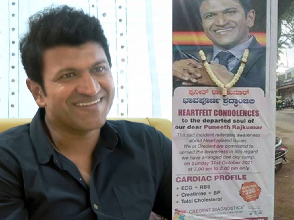 కన్నడ పవర్ స్టార్ పునీత్ రాజ్ కుమార్ హఠాన్మరణం చిత్ర పరిశ్రమను కలిచివేసింది. జిమ్ చేస్తుండగా గుండెపోటుకు గురైన పునీత్ చికిత్స పొందుతూ మృతిచెందారు. ఒక పక్క ఆయన మరణాన్ని అభిమానులు జీర్ణించుకులేక ఆత్మహత్యలు చేసుకొంటుంటే.. మరోపక్క కొంతమంది డబ్బుకోసం ఆయన మృతిని ప్రచారం కింద వాడుకుంటున్నారు. ఆయన మృతికి సంతాపం తెలియజేసినట్లే తెలుపుతూ.. దాని కింద వారి వ్యాపార ప్రకటనలు ఇవ్వడం ప్రస్తుతం నెట్టింట సంచలనంగా మారింది.