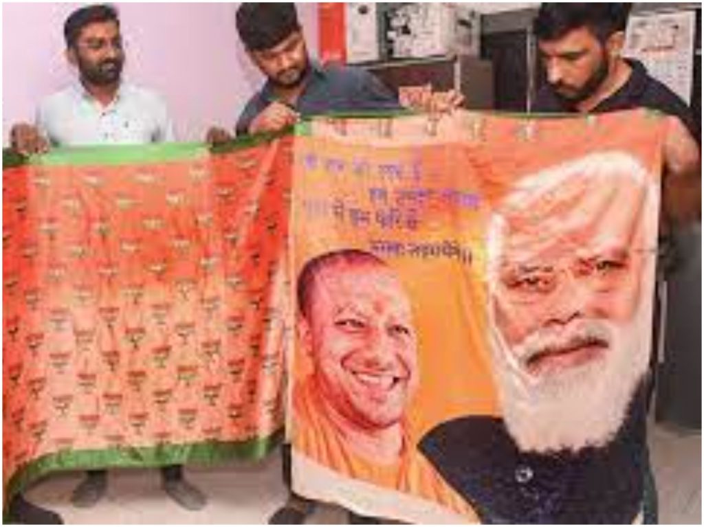 యూపీలో ఎన్నికలు సూరత్ వ్యాపారులకు బంగారుపంట పండిస్తోంది. ఎన్నికలంటే ప్రచార హోురు. కానీ కరోనా పుణ్యమాని దేశంలో జరిగే 5 రాష్ట్రాల ఎన్నికల్లో భారీ బహిరంగ సభలకు అవకాశం లేకుండా పోతోంది. దీంతో పార్టీలు వేరే దారులు వెతుకుతున్నాయి. యూపీ ఎన్నికలలో ప్రచారం కరోనా కారణంగా తగ్గిపోయింది. ఎన్నికలలో తమ తరఫున ప్రచారం చేసే మహిళలకు చీరలు పంచాలని నిర్ణయించింది. సూరత్ లోని వ్యాపారులకు 3 డీ ప్రింటింగ్ చీరలకు ఆర్డర్లు వచ్చాయి. సూరత్ లోని బట్టల వ్యాపారులు ప్రధానమంత్రి మోడీ, యూపీ సీఎం యోగి ఫోటోలతో కూడిన చీరలకు గిరాకీ ఏర్పడింది.యూపీలో మరోసారి గెలవాలని బీజేపీ ప్లాన్ వేస్తోంది.