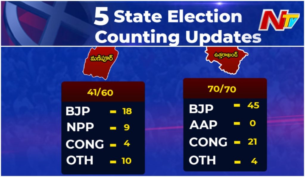- మణిపూర్: బీజేపీ-23, కాంగ్రెస్ 13, ఎన్పీపీ 11