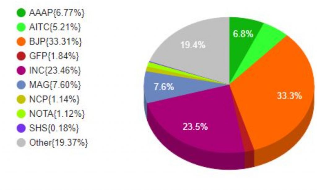 100 సీట్లలో పోటీచేసిన హైదరాబాద్ ఎంపీ అసదుద్దీన్ ఓవైసీ పార్టీ ఎంఐఎం 0.47 శాతం ఓట్లు మాత్రమే పొందిందని ఈసీ తెలిపింది. ఆప్ 0.35 శాతం, జేడీయూ 0.11, సీపీఐ 0.07శాతం, సీపీఐ(ఎం), సీపీఐ(ఎంఎల్) ఎల్జేపీలు 0.01 శాతం చొప్పున ఓట్లు తెచ్చుకున్నాయి. ఎన్నికల్లో ఘన విజయం సాధించిన బీజేపీకి 41.6 శాతం ఓట్లు వచ్చాయి. రెండో స్థానంలో నిలిచిన సమాజ్వాదీ పార్టీ 32 శాతం ఓట్లు దక్కించుకుంది. వీటి తర్వాత బీఎస్పీకి 12.8శాతం, ఆర్ఎల్డీకి 3.02శాతం, కాంగ్రెస్కు 3.02 ఓట్లు వచ్చాయి.