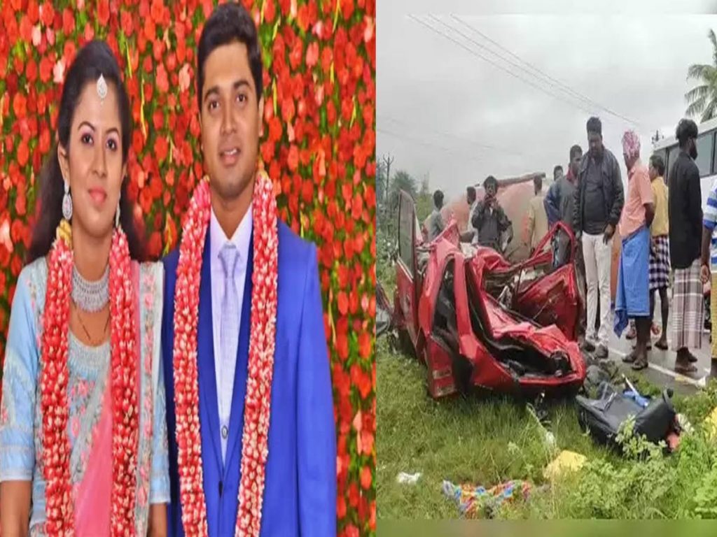 తమిళనాడులో ఘోర రోడ్డుప్రమాదం చోటుచేసుకుంది. సోమవారం జరిగిన ఈ ప్రమాదంలో నవ దంపతులు మృతిచెందడం ఇరు కుటుంబాలలో తీరని శోకం నెలకొంది. వివరాలలోకి వెళితే.. తమిళనాడులోని అరక్కోణానికి చెందిన మనోజ్ కుమార్ (31)కు, తాంబరం పెరుంగళత్తూరుకు చెందిన కార్తీక(30)కు నాలుగు రోజుల క్రితం అనగా అక్టోబర్ 28న ఘనంగా పెళ్లి జరిగింది. పెళ్లి తరువాత పెరుంగళ్తూరు నుంచి అరక్కోణం నవ దంపతులు కారులో బయలుదేరారు. ముచ్చట్లు చెప్పుకుంటూ, కొత్త జీవితం గురించి మాట్లాడుకుంటూ వస్తున్న ఆ జంట కారు మప్పేడు సమీపానికి వచ్చేసరికి అరక్కోణం నుంచి వస్తున్నా ఒక సిమెంట్ ట్యాంకర్ లారీ అదుపు తప్పి వారి కారును ఢీకొంది.