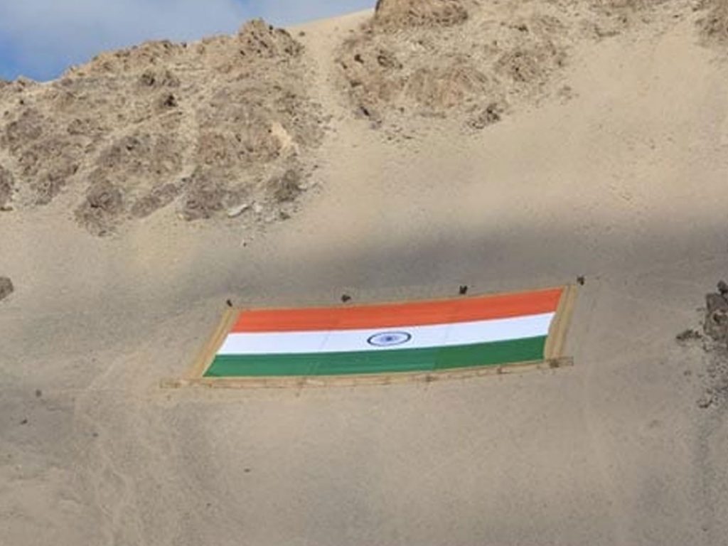 ఈరోజు మహాత్మా గాంధీ 152 వ జయంతి సందర్భంగా లేహ్లో 1400 కిలోల బరువున్న ఖాదీ వస్త్రంతో చేసిన అతిపెద్ద భారత జెండా ను ఆవిష్కరించారు. అయితే ఈ జాతీయ జెండా ఖాదీతో తయారు చేయబడిన ప్రపంచంలోనే అతిపెద్ద జాతీయ జెండా గా రికార్డు నెలకొల్పింది. దీని పొడవు 225 అడుగులు ఉండగా వెడల్పు 150 అడుగులుఫా ఉంది. 1400 కిలోల బరువు ఉన్న ఈ త్రివర్ణ పతాకం 37,500 చదరపు అడుగుల విస్తీర్ణంలో ఉంది. ఈ జెండాను తాయారు చేయడానికి 49 రోజులు పట్టినట్లు తెలుస్తుంది. ఇక ఈ జెండా ఆవిష్కరణకు లడఖ్ లెఫ్టినెంట్ గవర్నర్ ఆర్కే మాథూర్, కేంద్ర ఆరోగ్య మంత్రి మంసుఖ్ మాండవీయ హాజరయ్యారు.