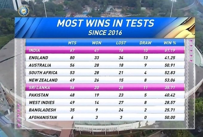 అటు భారత్ చివరిసారిగా 2012లో సొంతగడ్డపై ఇంగ్లండ్తో జరిగిన టెస్ట్ సిరీస్లో ఓటమిపాలైంది. ధోనీ సారథ్యంలో ఈ పరాజయాన్ని జట్టు మూటగట్టుకుంది. అప్పటి నుంచి భారత్ స్వదేశంలో ఒక్క టెస్ట్ సిరీస్ కూడా ఓడిపోలేదు. అంతేకాకుండా 2016 నుంచి అత్యధిక టెస్టులను గెలిచిన జట్టుగా కూడా టీమిండియా రికార్డు సాధించింది. 2016 నుంచి టీమిండియా మొత్తం 67 టెస్టులు ఆడగా 41 మ్యాచ్లలో గెలిచింది. 10 డ్రా కాగా 16 టెస్టుల్లో ఓడిపోయింది. ఈ జాబితాలో భారత్ తర్వాతి స్థానంలో ఇంగ్లండ్ ఉంది. ఇంగ్లండ్ 80 టెస్టులు ఆడి 33 మ్యాచ్లలో విజయం సాధించింది. 13 మ్యాచ్లను డ్రాగా ముగించగా 34 టెస్టుల్లో ఓటమిపాలైంది.