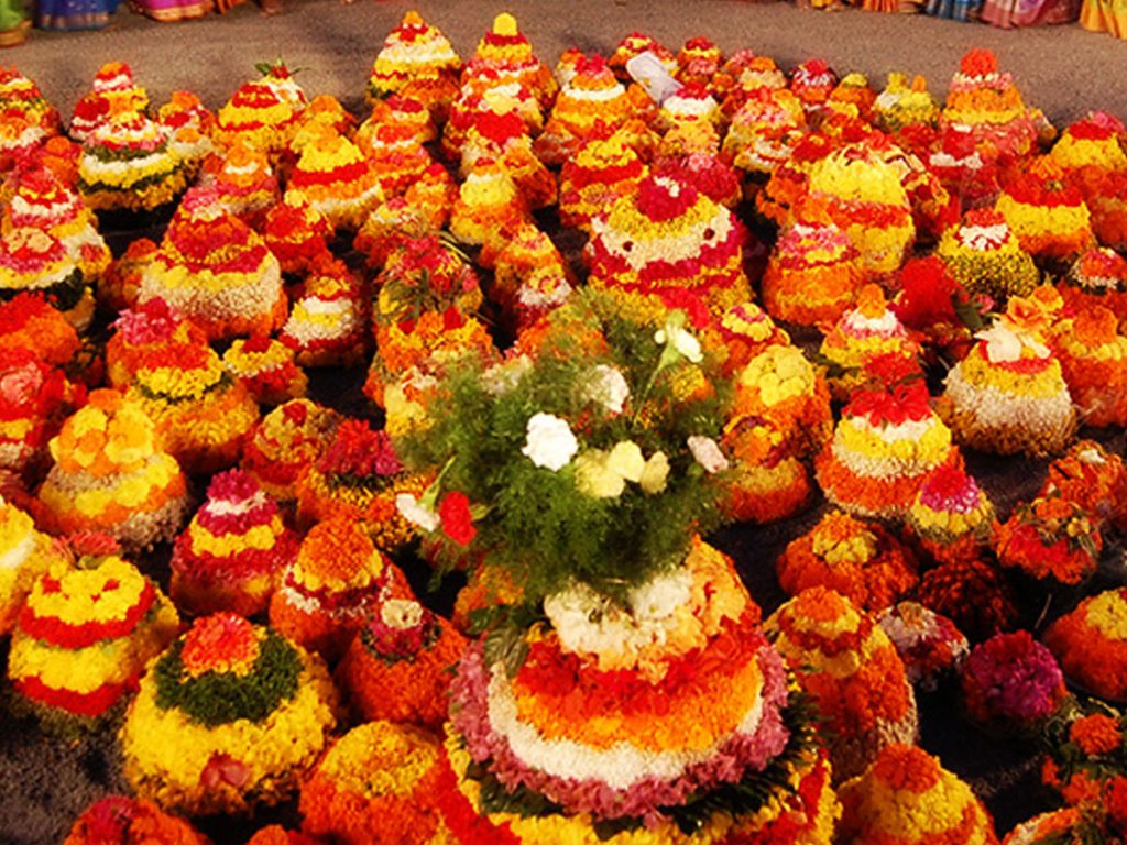 ఎంగిలిపూల బతుకమ్మ: మహాలయ అమవాస్య రోజు బతుకమ్మ వేడుక మొదలవుతుంది. తెలంగాణలో దీన్ని పెత్రామాస అని కూడా అంటారు. నువ్వులు, బియ్యం పిండి, నూకలు కలిపి నైవేద్యం తయారు చేస్తారు.