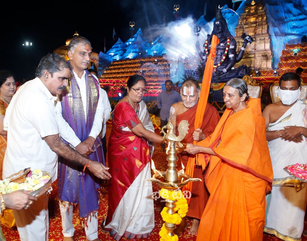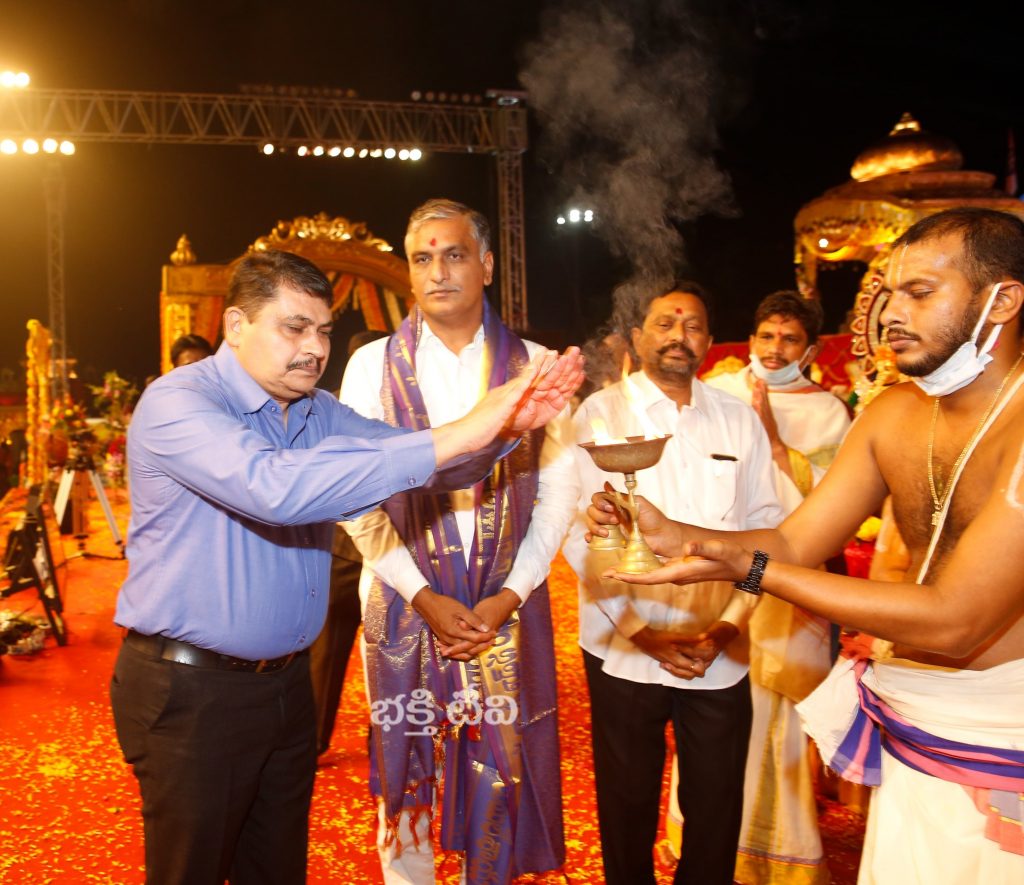 భక్తిటీవీ ప్రతిష్టాత్మకంగా నిర్వహిస్తున్న కోటి దీపోత్సవం కన్నుల పండువగా సాగుతోంది. కార్తీక మాసాన హైదరాబాద్ జంట నగర ప్రజలను ఆధ్యాత్మిక వాతావరణంలో మునిగితేలేలా చేస్తోంది. ఎన్టీఆర్ స్టేడియంలో జరుగుతున్న ఈ కార్యక్రమం గురువారం ఏడోరోజుకు చేరింది. వైకుంఠ చతుర్దశి సందర్భంగా ఏడోరోజు వేలాది మంది భక్తులు కోటి దీపోత్సవం ప్రాంగణానికి తరలివచ్చారు. ఏడోరోజు కార్యక్రమానికి ముఖ్య అతిథిగా తెలంగాణ ఆర్ధిక శాఖ మంత్రి హరీష్ రావు హాజరయ్యారు. ఆయనకు వేదపండితులు ప్రత్యేకంగా ఆశీర్వచనాలు అందజేశారు.