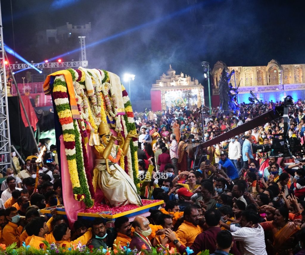ఏడోరోజు సందర్భంగా తొలుత శ్రీరామచంద్ర రామానుజ జీయర్ స్వామి, శ్రీవ్రతధర రామానుజ జీయర్ స్వామి ఆధ్వర్యంలో అనుగ్రహ భాషణం జరిగింది. అనంతరం బ్రహ్మశ్రీ గరికపాటి నరసింహారావు గారి ఆధ్వర్యంలో ప్రవచనామృతం నిర్వహించారు. ఆ తర్వాత వేదిరపై ద్వారకా తిరుమల శ్రీ వెంకటేశ్వర స్వామి ముడుపుల పూజను నిర్వహించారు. మరోవైపు భక్తులతో శ్రీవెంకటేశ్వర విగ్రహాలకు ముడుపుల పూజను చేయించారు.