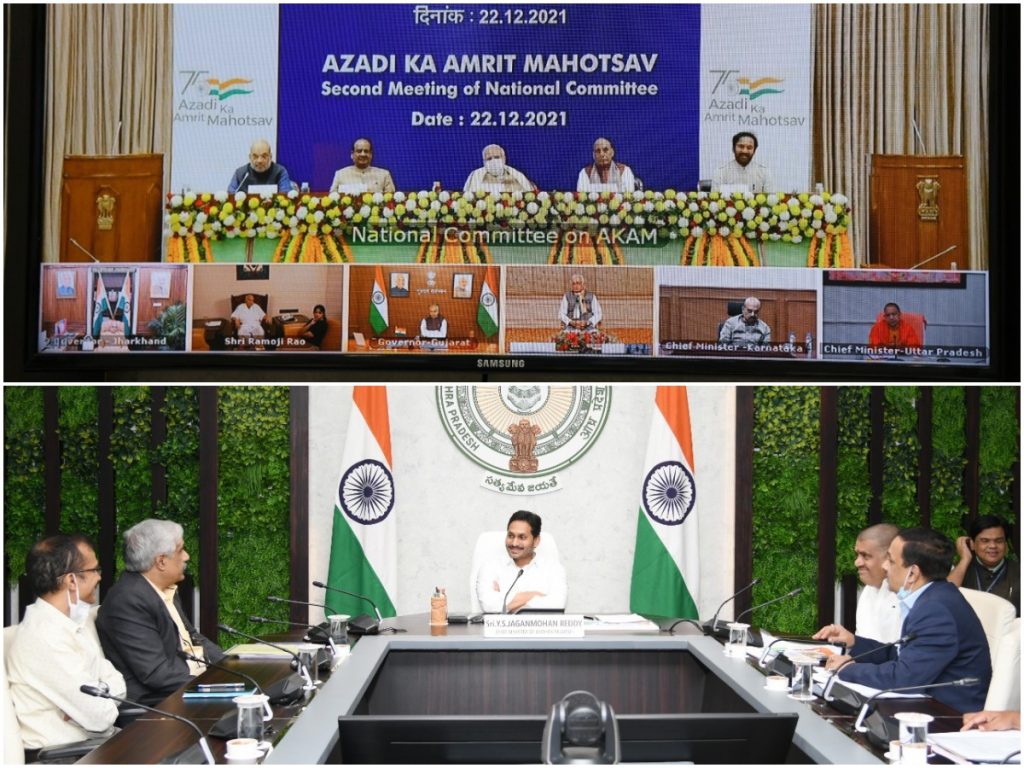 ఆజాదీకా అమృత్ మహోత్సవ్లో భాగంగా అమరావతి నుంచి వీడియో కాన్ఫరెన్స్లో పాల్గొన్నారు ఏపీ సీఎం జగన్మోహన్ రెడ్డి. క్యాంప్ కార్యాలయం నుంచి ప్రధాని నరేంద్ర మోదీతో వీడియో కాన్ఫరెన్స్లో పాల్గొని మాట్లాడారు. ప్రధానితో వీసీ కార్యక్రమానికి హాజరయ్యారు ఏపీ సాంస్కృతిక, పర్యాటక శాఖ మంత్రి ముత్తంశెట్టి శ్రీనివాసరావు, సీఎస్ సమీర్ శర్మ, రెవెన్యూశాఖ స్పెషల్ సీఎస్ రజత్ భార్గవ, ఇంధనశాఖ కార్యదర్శి నాగులాపల్లి శ్రీకాంత్, సమాచారశాఖ కమిషనర్ టి విజయ్ కుమార్రెడ్డి, సాంస్కృతిక శాఖ డైరెక్టర్ మల్లిఖార్జునరావు ఇతర ఉన్నతాధికారులు.