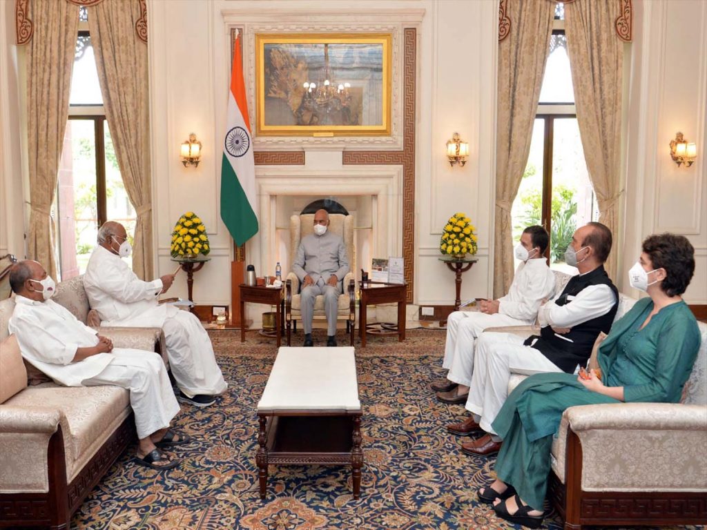 కాంగ్రెస్ పార్టీ నేతలు ఈరోజు రాష్ట్రపతిని కలిశారు. లఖింపూర్ ఘటనపై రాష్ట్రపతికి కంప్లైంట్ చేశారు. రాహుల్ గాంధీ నేతృత్వంలోని బృందం ఈరోజు రాష్ట్రపతి రామ్నాథ్ కోవింద్ను కలిసింది. ఘటనపై స్వతంత్ర బృందంచేత దర్యాప్తు జరిపించాలని కాంగ్రెస్ నేతలు రాష్ట్రపతిని కోరారు. అంతేకాకుండా, కేంద్రమంత్రి అజయ్ మిశ్రాను వెంటనే పదవి నుంచి తొలగించాలని కాంగ్రెస్ బృందం రాష్ట్రపతికి విజ్ఞప్తి చేసింది. రాష్ట్రపతి రామ్నాథ్ కోవింద్కు వినతి పత్రం అందజేసిన తరువాత రాహుల్ గాంధీ మీడియాతో మాట్లాడారు. లఖింపూర్ ఘటనలో తమవి రెండే రెండు డిమాండ్లు ఉన్నాయని, ఒకటి సుప్రీంకోర్టు సిట్టింగ్ న్యాయమూర్తితో స్వతంత్ర దర్యాప్తు జరిపించాలి, రెండోది కేంద్ర హోంశాఖ సహాయమంత్రిగా ఉన్న అజయ్ మిశ్రా పదవికి రాజీనామా చేయాలి లేదా ఆయన్ను తొలగించాలని రాహుల్ గాంధీ పేర్కొన్నారు. మిశ్రా పదవిలో ఉన్నతంత వరకు రైతులకు న్యాయం జరగదని, ఆయన రైతులను బెదిరించిన సందర్భాలు కూడా ఉన్నాయని రాహుల్ గాంధీ పేర్కొన్నారు. తమ డిమాండ్లపై ప్రభుత్వంతో చర్చిస్తామని రాష్ట్రపతి హామీ ఇచ్చారని రాహుల్ గాంధీ తెలిపారు.