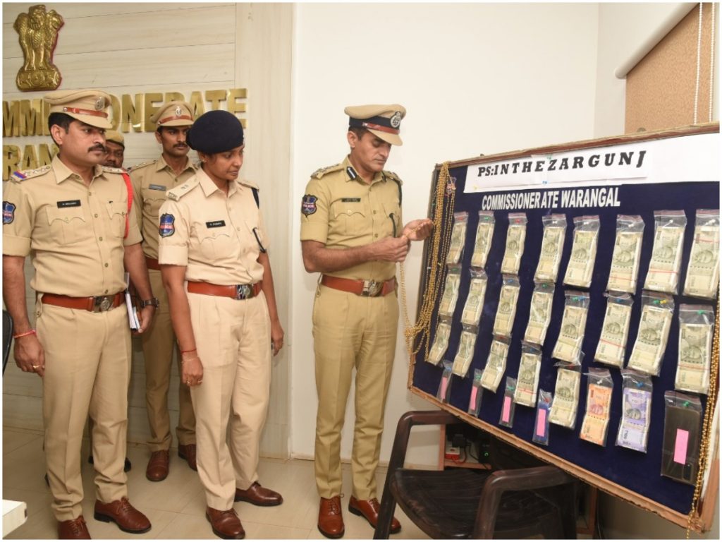 ఈ సంఘటనపై సెంట్రల్ జోన్ డిసీపీ పుష్పారెడ్డి ప్రత్యేక దృష్టి సారించి ప్రత్యేక పోలీస్ దర్యాప్తు బృందాన్ని ఏర్పాటు చేశారు. అత్యాధునిక టెక్నాలజీని వినియోగించుకుని నిందితులను గుర్తించారు. మరొకరిని మోసం చేయడానికి ఖమ్మం నుండి రైలు ద్వారా వరంగల్ రైల్వే స్టేషను నిందితులు చేరుకున్నట్లుగా సమాచారం వచ్చింది. దీంతో ఇంతేజా గంజ్ ఇన్ స్పెక్టర్ మల్లేష్ తన సిబ్బందితో వెళ్ళి నిందితులను అదుపులోని తీసుకోని విచారించగా నిందితులు పాల్పడిన మోసాన్ని పోలీసుల ఎదుట అంగీకరించారు. వారి నుంచి డబ్బు, నకిలీ బంగారు హారాన్ని స్వాధీనం చేసుకున్నారు. నిందితులను పట్టుకోవడంలో ప్రతిభ కనబరిచిన సెంట్రల్ జోన్ డీసీపీ పుష్పారెడ్డి, ఇన్ స్పెక్టర్ మల్లేష్, ఎస్ఐ శ్రవణ్,ఇతర పోలీసు సిబ్బందిని పోలీస్ కమిషనర్ అభినందించారు.