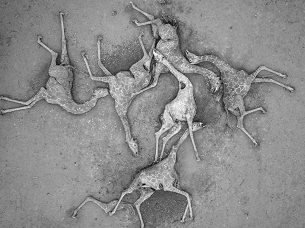 ఆఫ్రికా దేశం కెన్యాలో ప్రస్తుతం కరువు తాండవిస్తోంది. సెప్టెంబర్ నెలలో సాధారణ వర్షపాతం కంటే తక్కువ వర్షపాతం నమోదవ్వడంతో వన్యప్రాణులకు ఆహరం, నీరు దొరక్క మృత్యువాత పడుతున్నాయి. కెన్యా సఫారీలోని ఓ ప్రాంతంలో ఆరు జిరాఫీలు ఆహారం, నీరు దొరక్క మృత్యువాత పట్టాయి. ఆ దృశ్యాలు హృదయవిదారకంగా మారాయి. డ్రోన్ నుంచి తీసిన ఫొటోలు చూస్తే చేత్తో వేసిన ఆర్ట్స్ మాదిరిగా ఉన్నది. అయితే, అదే ఫొటోలను దగ్గరగా చూస్తే ఒళ్లు జలదరించకమానదు.