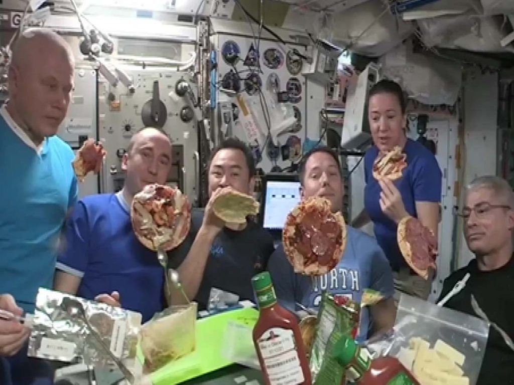 ప్రపంచంలో ఎక్కువ మంది పిజ్జాలు తింటుంటారు. ప్రతిరోజూ కోట్లాది పిజ్జాలను ప్రజలు ఆర్డర్ చేస్తుంటారు. భూమి మీద ఎలా ఉన్నా, అంతరిక్షంలోని స్పేస్ స్టేషన్లో ఉండే వ్యోమగాములు ఆహారం విషయంలో చాలా జాగ్రత్తగా ఉంటారు. ఎందుకంటే, అక్కడ వారు వీలైనంత తక్కువగా ఆహారం తీసుకోవాలి. భారరహిత స్థితిలో ఉంటారు. పైగా అరుగుదల చాలా తక్కువగా ఉంటుంది. వీటన్నింటిని పక్కన పెట్టి భూమిపై ఉంటే ఎలాగైతే పార్టీ చేసుకుంటారో అదే విధంగా అంతరిక్ష కేంద్రంలో కూడా పిజ్జా పార్టీ చేసుకున్నారు వ్యోమగాములు. మొత్తం 6మంది వ్యోమగాములు అంతర్జాతీయ స్పేస్ స్టేషన్లో ఉన్నారు. ఆరుగురు కలిసి వేడి వేడిగా పిజ్జాలను తయారు చేసుకొని రుచి చూశారు. ఈ తతంగాన్ని వీడియోగా తీసి ఇన్స్టాగ్రామ్లో పోస్ట్ చేశారు. ఈ వీడియో ఇప్పుడు సోషల్ మీడియాలో వైరల్గా మారింది.