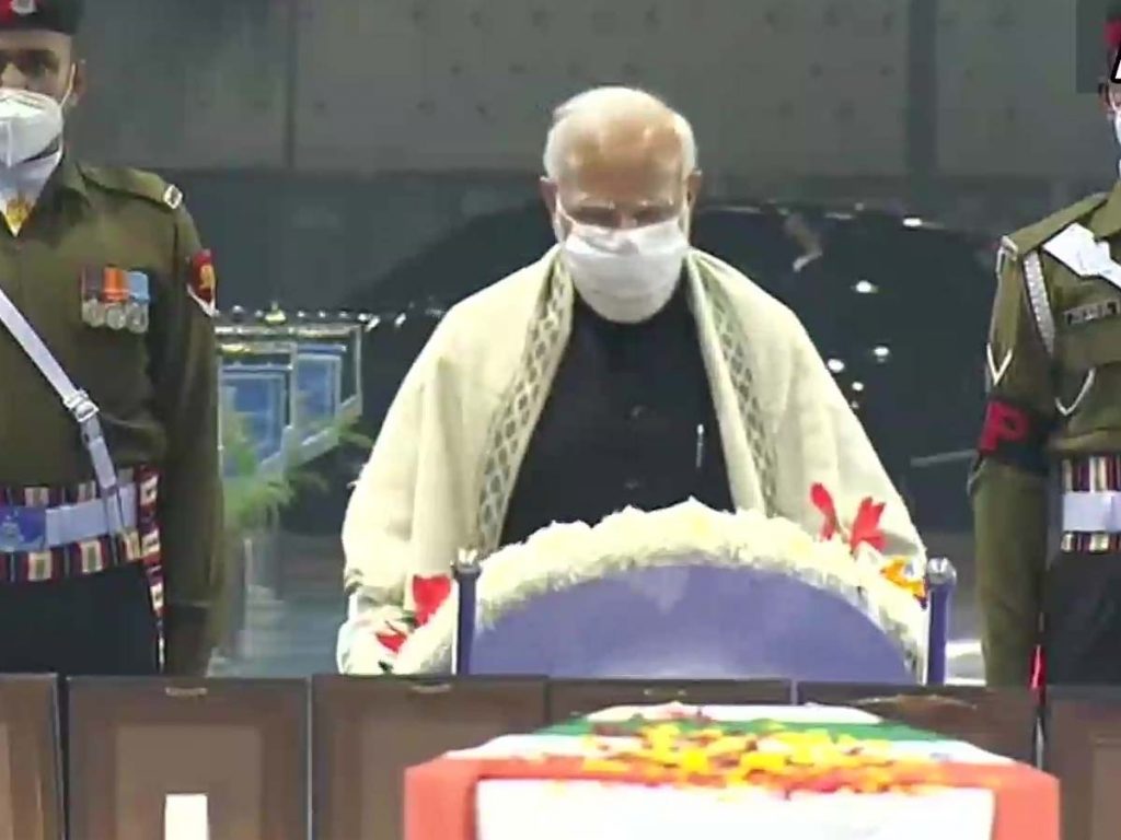 అనంతరం రాత్రి 9:05 గంటలకు ప్రధాని మోడీ ఆర్మీ అధికారుల పార్థీవ దేహాలకు నివాళులు ఆర్పిస్తారు. రాత్రి 9:15 గంటలకు రాష్ట్రపతి నివాళులు అర్పిస్తారు. తమిళనాడులోని నీలగిరి జిల్లా కూనూరు వద్ద ఆర్మీ హెలికాప్టర్ కూలిన సంగతి తెలిసిందే. ఈ ప్రమాదంలో బిపిన్ రావత్, ఆయన భార్య మధులిక, 11 మంది ఆర్మీ అధికారులు మృతి చెందారు. ఆ ఘటన యావత్ భారతదేశాన్ని కంటతడిపెట్టించింది.