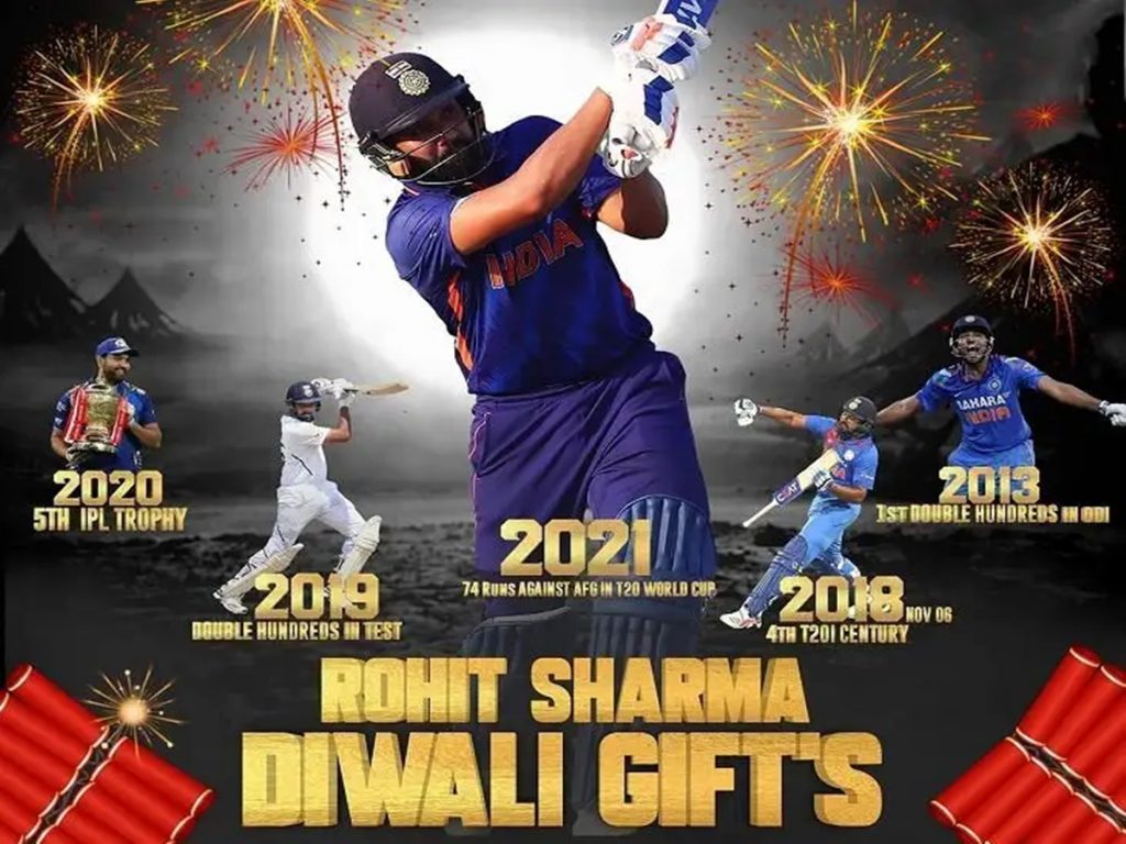 2013లో దీపావళి సమయంలో ఆస్ట్రేలియాపై వన్డేల్లో తొలిసారిగా డబుల్ సెంచరీ చేశాడు. 2016లో న్యూజిలాండ్తో జరిగిన మ్యాచ్లో 70 పరుగులు సాధించాడు. 2018లో వెస్టిండీస్ జట్టుపై 111 పరుగులు చేశాడు. 2019లో దక్షిణాఫ్రికా జట్టుపై (212) టెస్టుల్లో డబుల్ సెంచరీ సాధించాడు. 2020లో కెప్టెన్ గా ఐదో ఐపీఎల్ ట్రోఫీని సాధించాడు. ఈ ఏడాది ఆఫ్ఘనిస్తాన్ జట్టుపై 74 పరుగులు చేసి తన తడాఖా చూపించాడు. దీపావళికే కాదు తన భార్య పుట్టినరోజున, పెళ్లి రోజున కూడా రోహిత్ గతంలో భారీ స్కోర్లు చేసిన సందర్భాలు ఉన్నాయి.