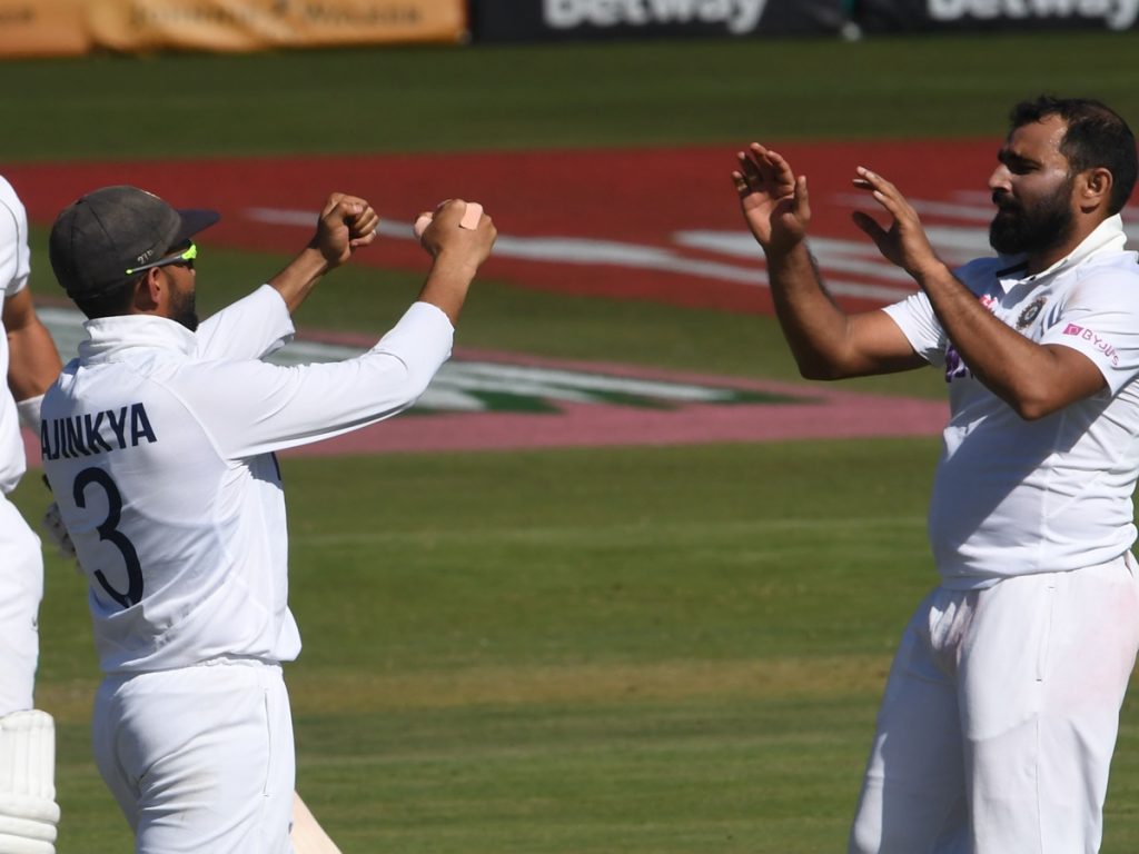 భారత బౌలర్లలో మహ్మద్ షమీకి 5 వికెట్లు పడ్డాయి. షమీ 16 ఓవర్లు బౌలింగ్ వేసి 44 పరుగులు ఇచ్చి 5 వికెట్లు సాధించాడు. బుమ్రా 2 వికెట్లు, శార్దూల్ ఠాకూర్ 2 వికెట్లతో రాణించారు. మహ్మద్ సిరాజ్కు ఓ వికెట్ దక్కింది. ఇన్నింగ్స్ 11వ ఓవర్లో గాయపడి మైదానం వీడిన బుమ్రా దక్షిణాఫ్రికా 7 వికెట్లు కోల్పోయిన తర్వాత మళ్లీ వచ్చి ఓ వికెట్ తీశాడు. కాగా టీమిండియాకు 130 పరుగుల కీలకమైన తొలి ఇన్నింగ్స్ ఆధిక్యం దక్కింది.