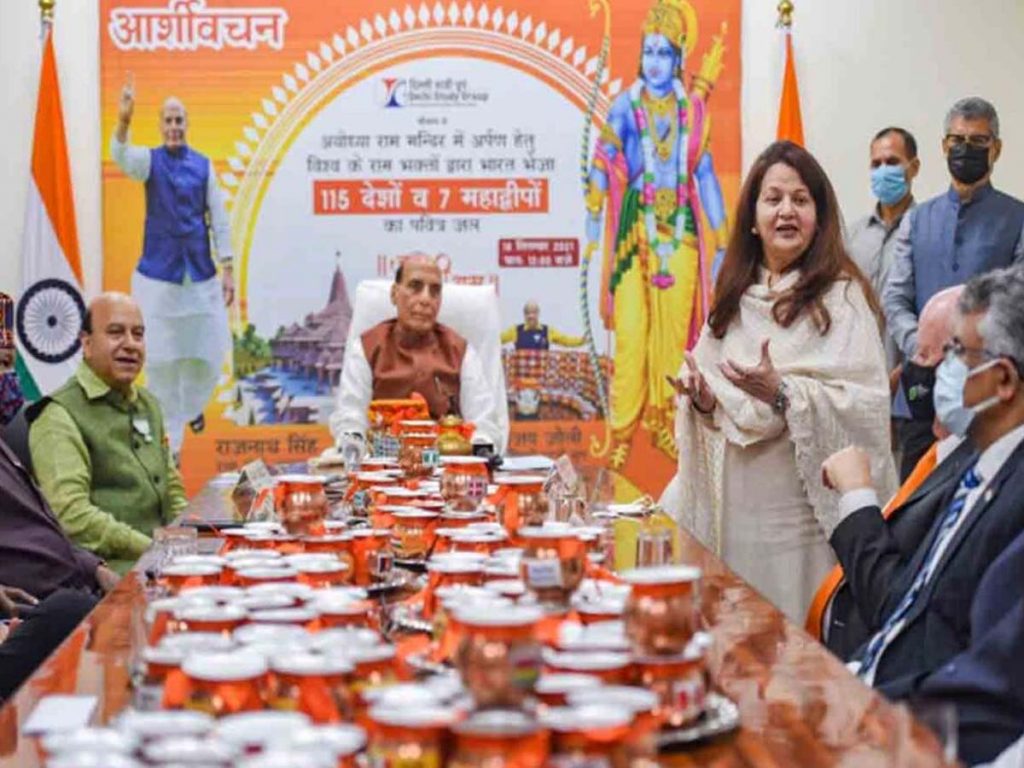 అయోధ్యలో శ్రీరాముడి అలయం వేగంగా నిర్మాణం జరుపుకుంటోంది. 2022 చివరి వరకు మొదటిదశ నిర్మాణం పనులు పూర్తి చేసుందుకు ప్రణాళికలు సిద్దం చేసుకొని నిర్మాణం చేపడుతున్నారు. కరోనా మహమ్మారి సమయంలో కూడా పనులకు ఎలాంటి విఘాతం కలగకుండా నిర్మాణం పనులు చేపడుతున్నారు. ఇక ఇదిలా ఉంటే, భవ్యరామాలయంలోని రాముడి అభిషేకానికి ప్రపంచంలోని 115 దేశాల నుంచి నీటిని తెప్పిచంచారు ఢిల్లీకి చెందిన బీజేపీ మాజీ ఎమ్మెల్యే విజయ్జొల్లి. ఢిల్లీ స్టడీ సర్కిల్ ఎన్జీవో సంస్థతో కలిసి ప్రపంచంలోని 115 దేశాల నుంచి నీటిని తెప్పించారు. వివిధ దేశాల నుంచి తీసుకొచ్చిన నీటితో శ్రీరాముడికి జలాభిషేకం చేయనున్నట్టు ట్రస్ట్ పేర్కొన్నది. ఈ నీటిని ఈరోజు కేంద్ర రక్షణశాఖ మంత్రి రాజ్నాథ్సింగ్, డెన్మార్క్, నైజీరియా సహా అనేక దేశాల రాయబారుల సమక్షంలో అయోధ్యరామాలయం ట్రస్ట్ శ్రీరామజన్మభూమి తీర్ఠక్షేత్ర ట్రస్ట్కు అందజేశారు. మిగతా 77 దేశాల నుంచి కూడా త్వరలోనే నీటిని తీసుకొస్తామని, వసుదైక కుటుంబానికి అసలైన అర్థం ఇదే అని రాజ్నాథ్ సింగ్ పేర్కొన్నారు.
