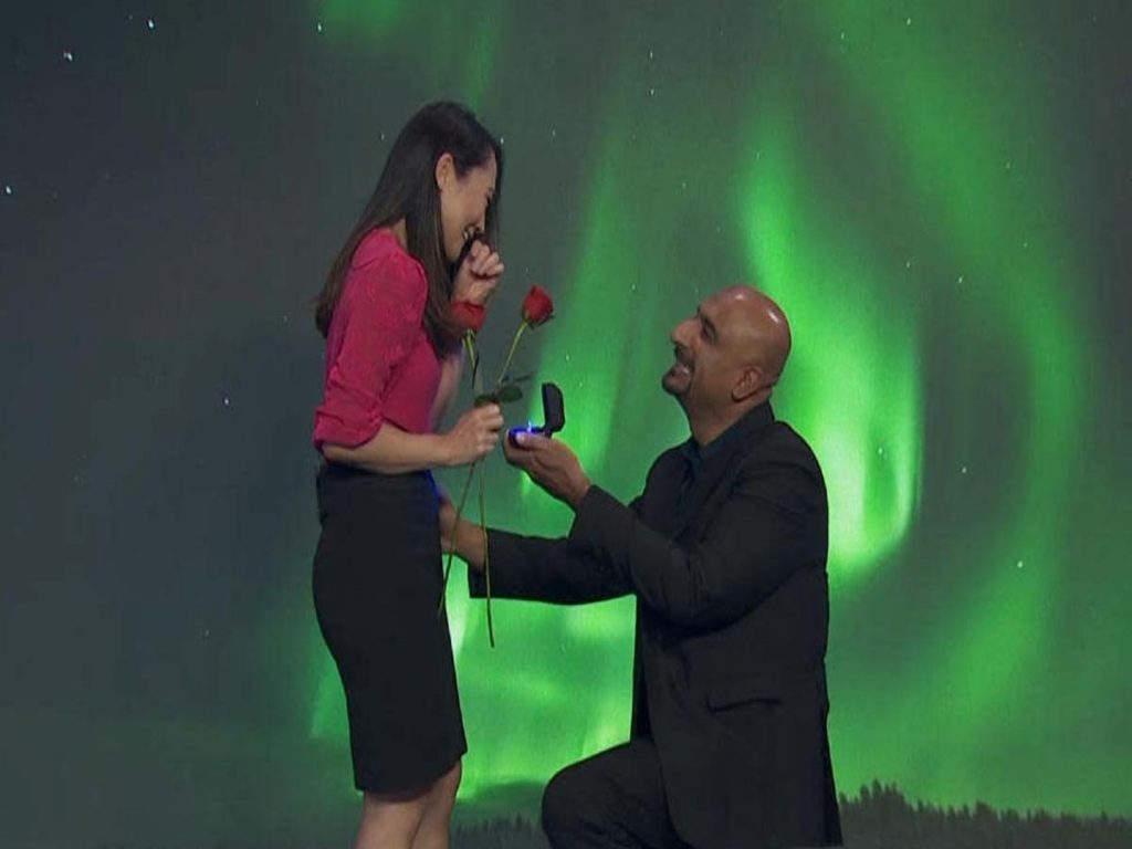 వాలంటైన్ డే రోజున ప్రేమికులు ప్రపోజల్స్ చేసుకుంటూ ఉంటారు. ఇది కామన్గా జరిగే ప్రాసెస్. అయితే, అందరికంటే ఢిఫరెంట్ గా ఉండేందుకు, వార్తల్లో నిలిచిపోయేందుకు కొందరు ప్రయత్నిస్తుంటారు. అలాంటి ఘటన ఒకటి ప్రేమికుల దినోత్సవం రోజున జరిగింది. మేరీ లీ అనే మహిళ సీబీఎస్ శాన్ ఫ్రాన్సిస్కోలో వాతావరణవేత్తగా పనిచేస్తున్నది. వాతావరణానికి సంబందించిన రిపోర్ట్ను స్టూడియోలో ఉత్తర భాగంలోని లైట్స్ గురించి లైవ్ రిపోర్ట్ ఇస్తుండగా, ఆమె లాంగ్టైమ్ బాయ్ఫ్రెండ్ అజిత్ నినాజ్ ఆమెకు సర్ప్రైజ్ ఇచ్చాడు.