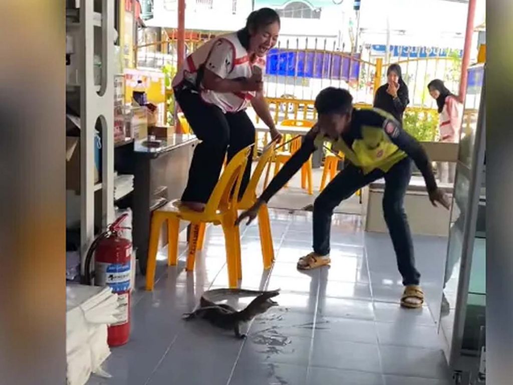 రెస్టారెంట్కు వెళ్లిన ఓ యువతికి చేదు అనుభవం ఎదురైంది. రెస్టారెంట్ లోపలికి అడుగుపెట్టిన వెంటనే ఆమెకు బల్లిజాతికి ఓ పెద్ద ఉడుము కనిపించింది. భయపడిన ఆ యువతి వెంటనే అక్కడే ఉన్న ప్లాస్టిక్ కుర్చి ఎక్కింది. పెద్దగా అరవడం మొదలుపెట్టింది. ఆమె అరుపులకు భయపడిన ఆ ఉడుము ఆ యువతి మీదకు దూకే ప్రయత్నం చేసింది. దీంతో మరింత బిగ్గరగా అరడం మొదలుపెట్టింది. అక్కడే ఉన్న ఓ వ్యక్తి పరిగెత్తుకు వచ్చి దానిని అక్కడి నుంచి తొలగించే ప్రయత్నం చేశాడు. కానీ, యువతి అరుపులకు ఉడుము బెదిరిపోయి దాడి చేసేందుకు ప్రయత్నించింది. కాపేండేందుకు వచ్చిన ఆ వ్యక్తికి కూడా భయం వేసింది.