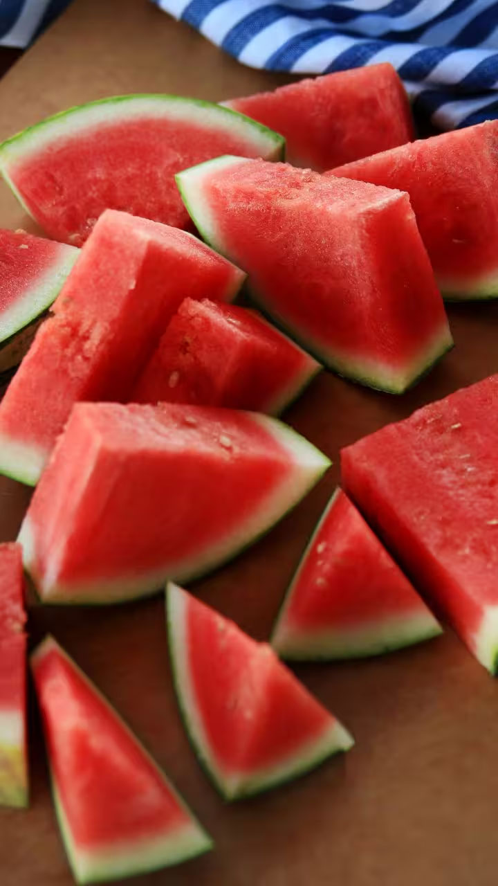 పుచ్చకాయ – నీటి శాతం ఎక్కువగా ఉండి శరీరాన్ని చల్లగా ఉంచి డీహైడ్రేషన్ తగ్గిస్తుంది.